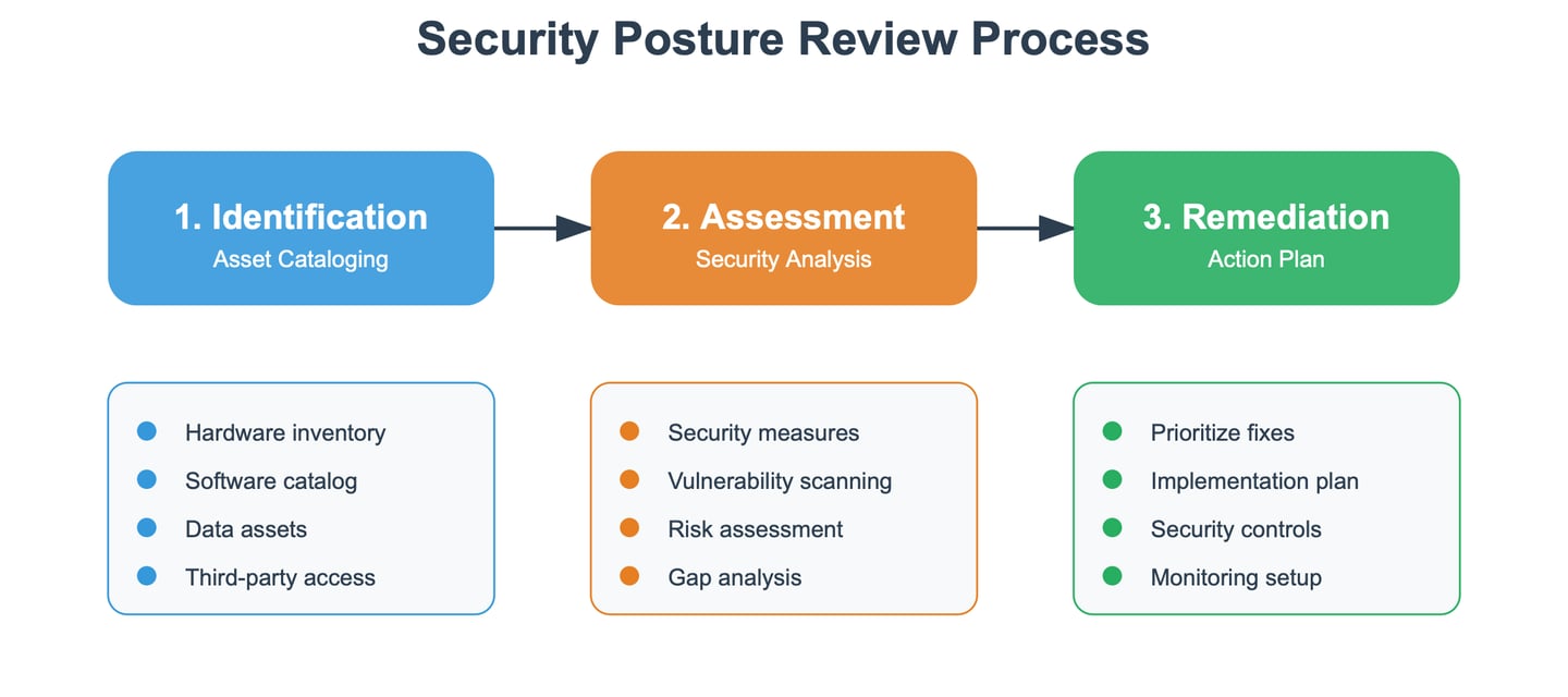 A Security Posture Review (SPR) is a comprehensive evaluation of your organisation’s current cybersecurity measures and overall readiness to handle threats. It involves assessing your policies, processes, and technical controls to identify vulnerabilities and gaps in your defences. By focusing on both strengths and weaknesses, an SPR provides actionable recommendations to enhance your security, protect critical assets, and align your practices with industry standards, ensuring you’re prepared for today’s evolving threat landscape.